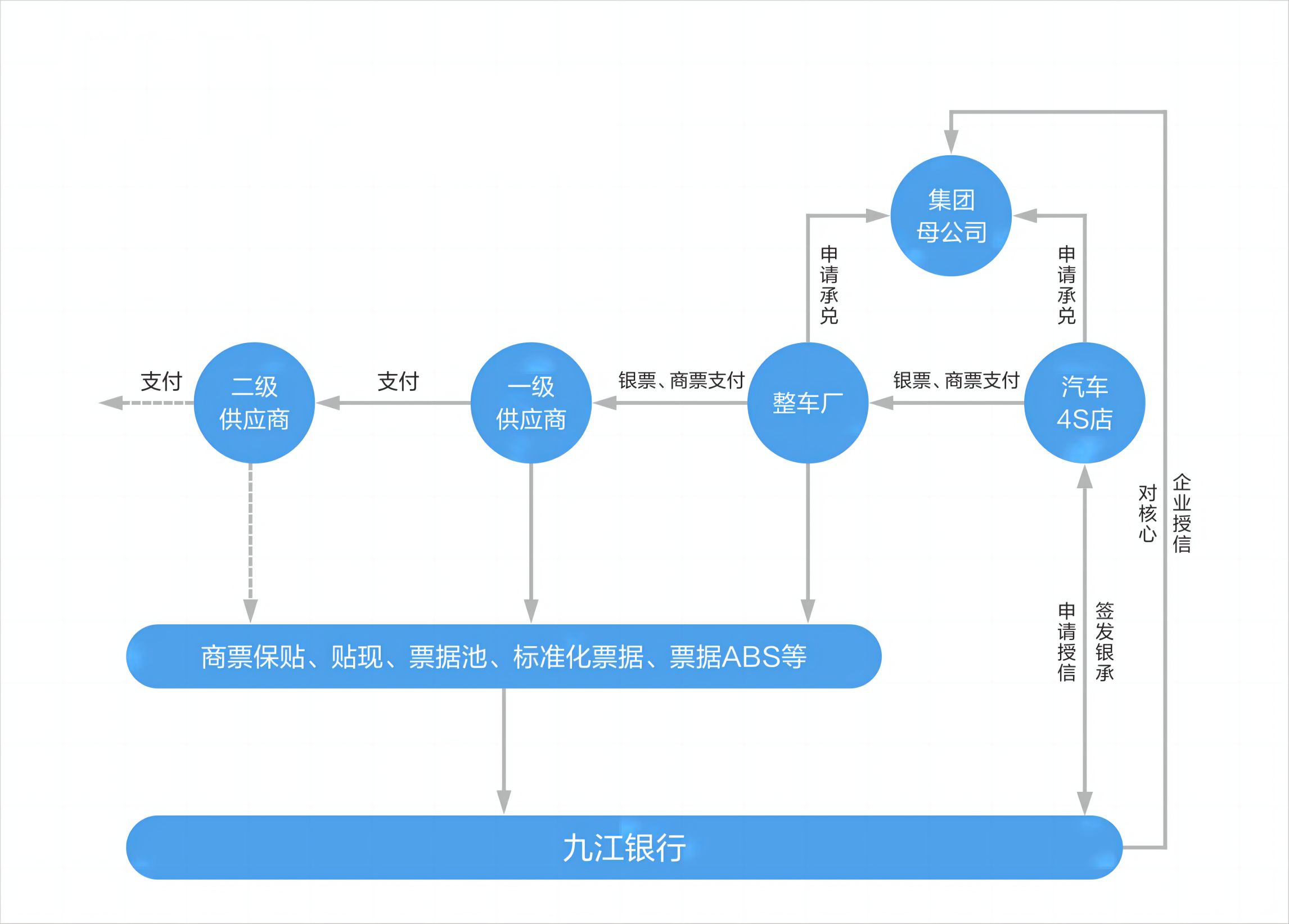定义:指九江银行面向供应链核心企业及上下游企业提供票据结算和融资综合服务方案,旨在盘活供应链上应收应付账款,解决链条上的中小企业融资难融资贵问题,提升产业链的总体竞争力。