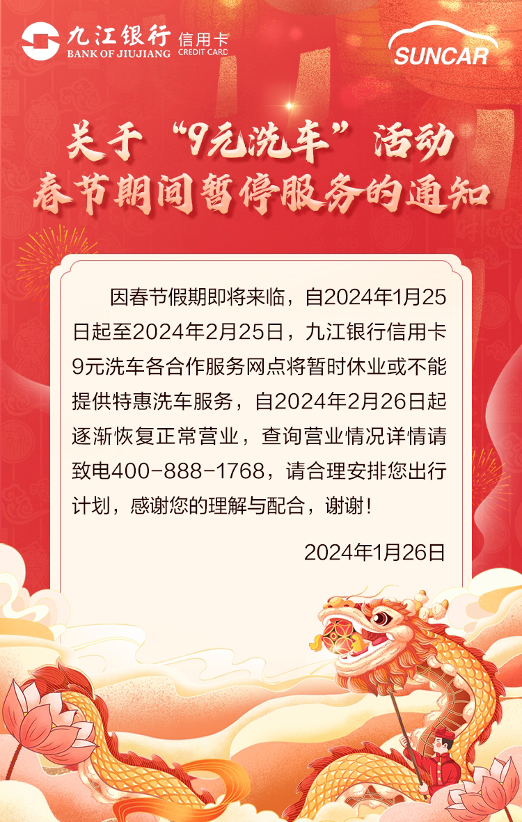 关于“9元洗车”活动春节期间暂停服务的通知
