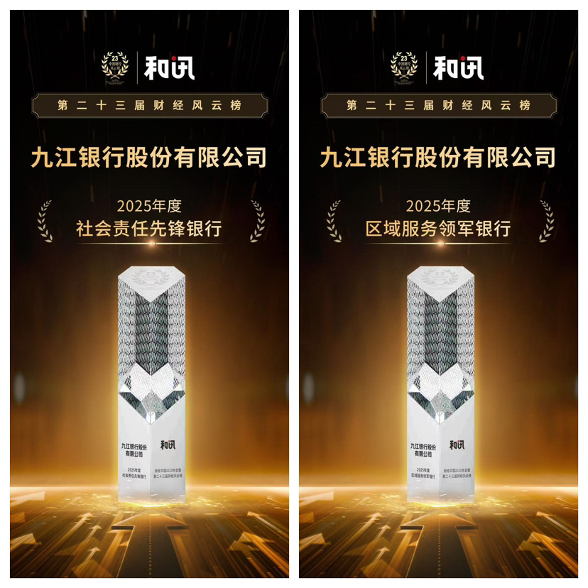 近日,在由联办集团、和讯联合主办,财经中国会承办的“财经中国2025年会暨第23届财经风云榜”上,九江银行荣获“2025年度社会责任先锋银行”与“2025年度区域服务领军银行”双项荣誉。此次评选以“寻找中国经济破局之路”为主题,旨在表彰引领金融业向上、向善发展的标杆机构,荣获双奖彰显了业界对九江银行长期深耕社会责任、精准服务地方经济的高度认可。
