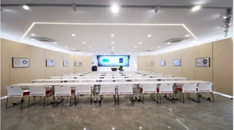 (三)专家讲座区:以屏风做空间阻隔,呈半封闭式,内屏展示古钱币知识,配备投影仪、电脑等设备,已放置桌椅60余套,同时配备桌椅40余套,可同时满足100多人的课程教学。