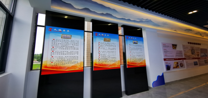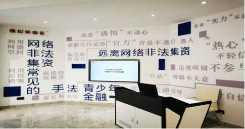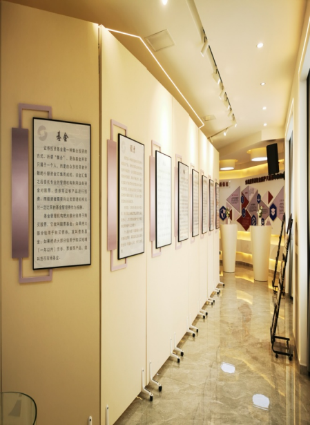 (八)过道展示:为强化基地金融宣教质效,在屏风内屏展示了银行分类、中央银行、银行服务、银行存款、股票、基金、债券、保险、个人信用、正确看待金钱等金融常识,呈现丰富的金融基础知识,引导在校学生树立正确金钱观,培养学生“懂金融、信金融、用金融、受益于金融”的意识;LED显示屏,可展示宣传视频、宣教课程等内容,配备了电脑、音响、麦克风等设备,能达到较佳的展示效果。